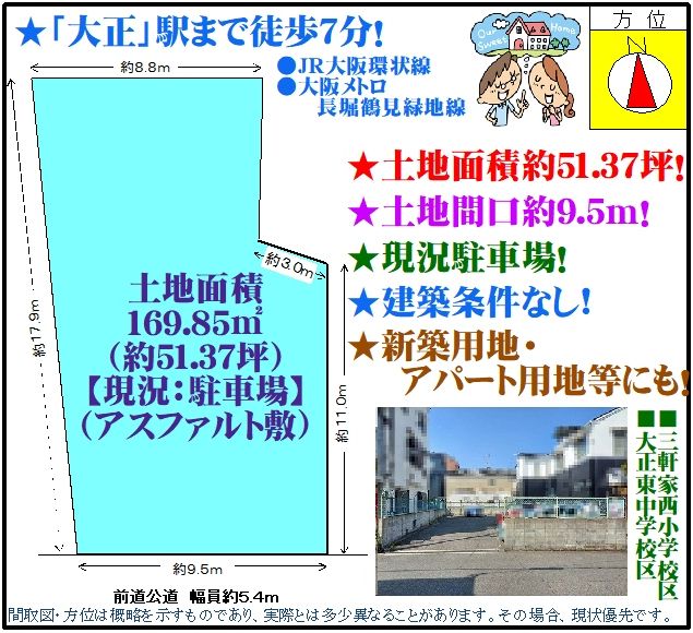 | 交通 | JR大阪環状線 大正駅 徒歩7分 大阪メトロ長堀鶴見緑地線 大正駅 徒歩6分 | ||
